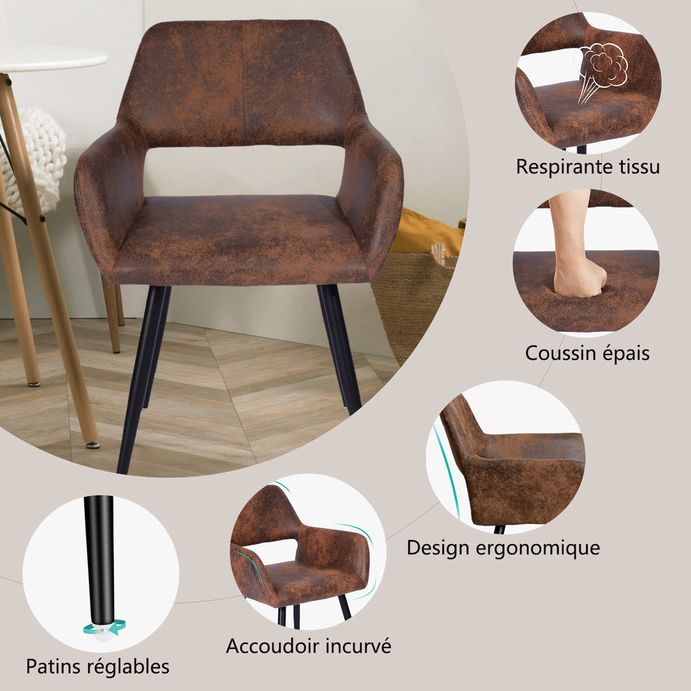Lot de 2 fauteuils de salle à manger industriels avec accoudoirs en suédine - CROMWELL
