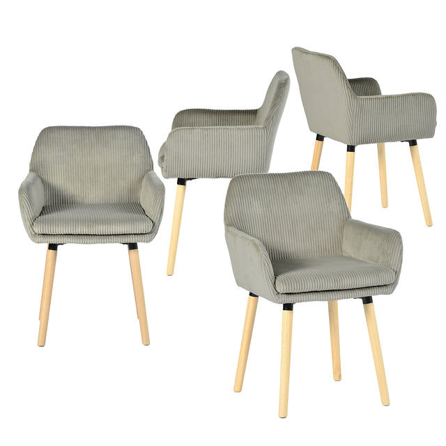 Lot de 4 chaises de salle à manger de style scandinave avec pieds en bois et accoudoirs en velours côtelé gris - ELIA