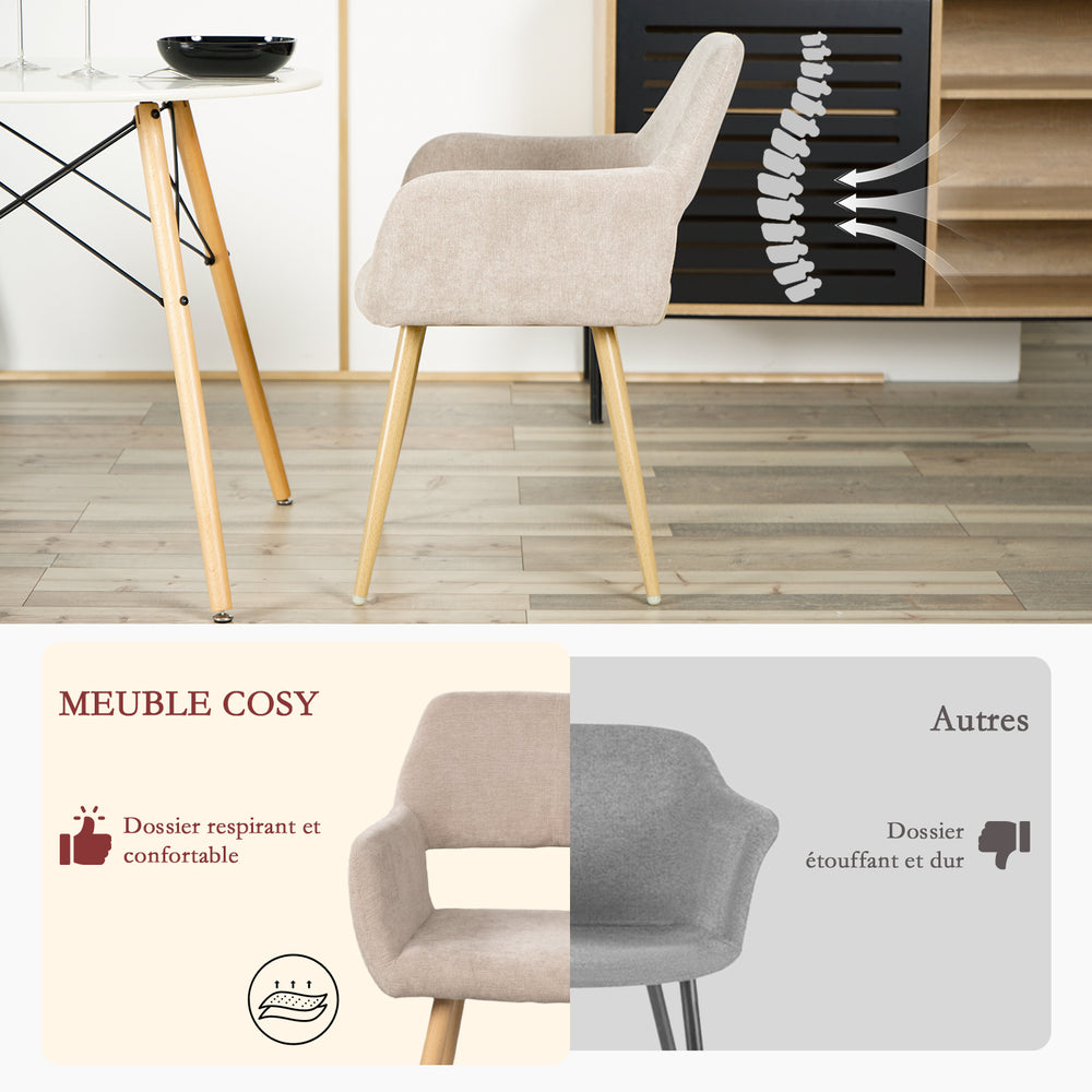 Lot de 4 fauteuils de salle à manger scandinaves avec accoudoirs en tissu beige - CROMWELL