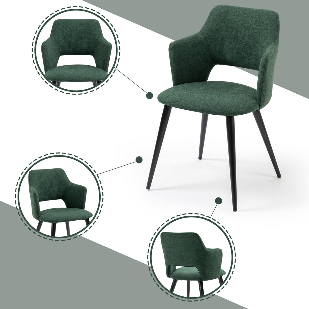 Lot de 4 fauteuils de salle à manger scandinaves avec accoudoirs en tissu vert - AKANJI