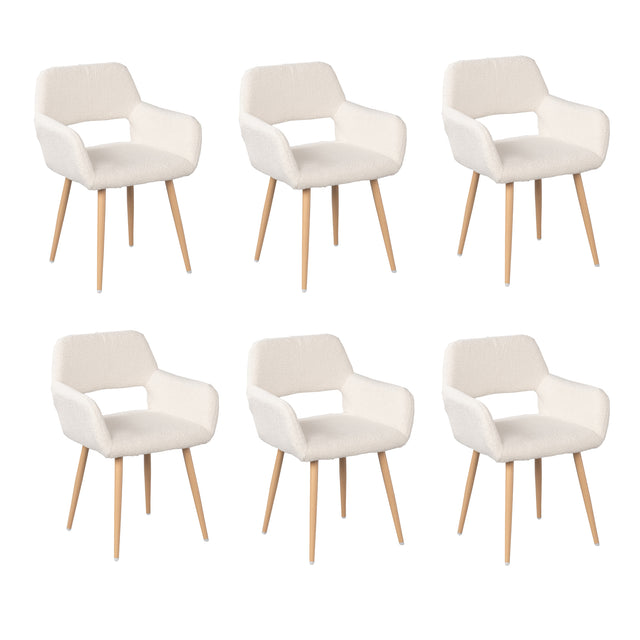 Lot de 6 fauteuils de salle à manger scandinaves avec accoudoirs en tissu mouton bouclette beige - CROMWELL