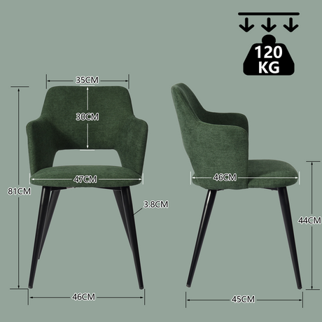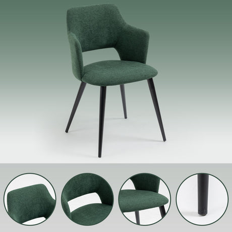 Lot de 4 fauteuils de salle à manger scandinaves avec accoudoirs en tissu vert - AKANJI