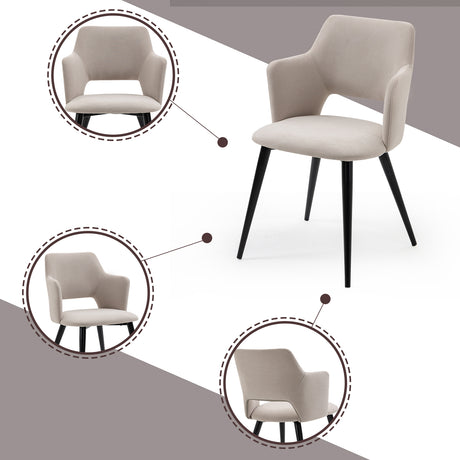 Lot de 6 chaises de salle à manger scandinaves avec accoudoirs en tissu beige - BETH