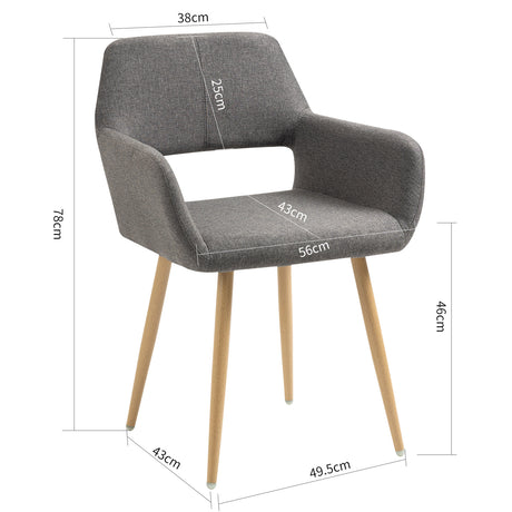 Lot de 4 fauteuils de salle à manger scandinaves avec accoudoirs en tissu gris - AKANJI