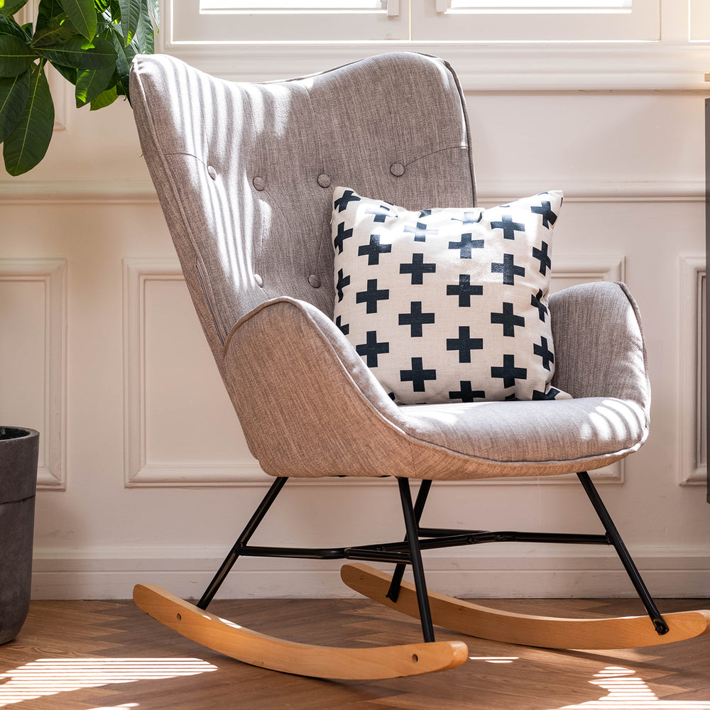 Fauteuil à bascule allaitement scandinave avec accoudoirs en tissu gris capitonné - EPPING