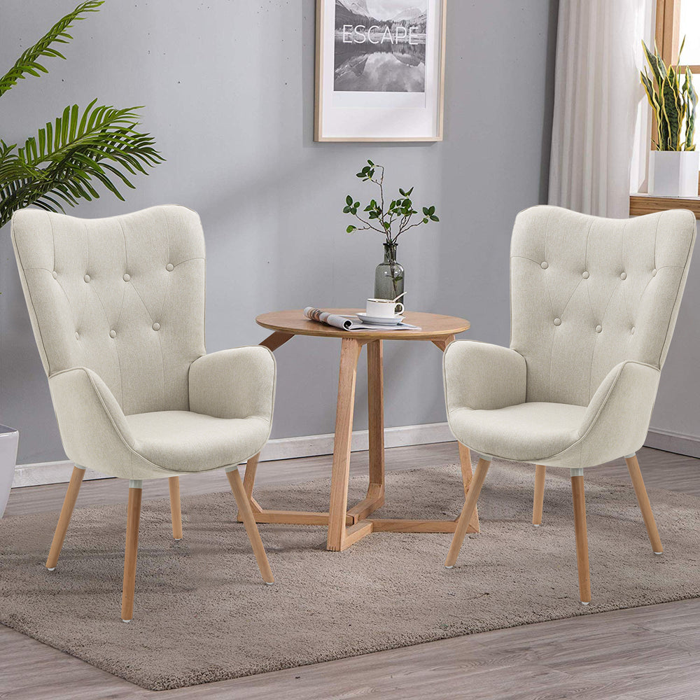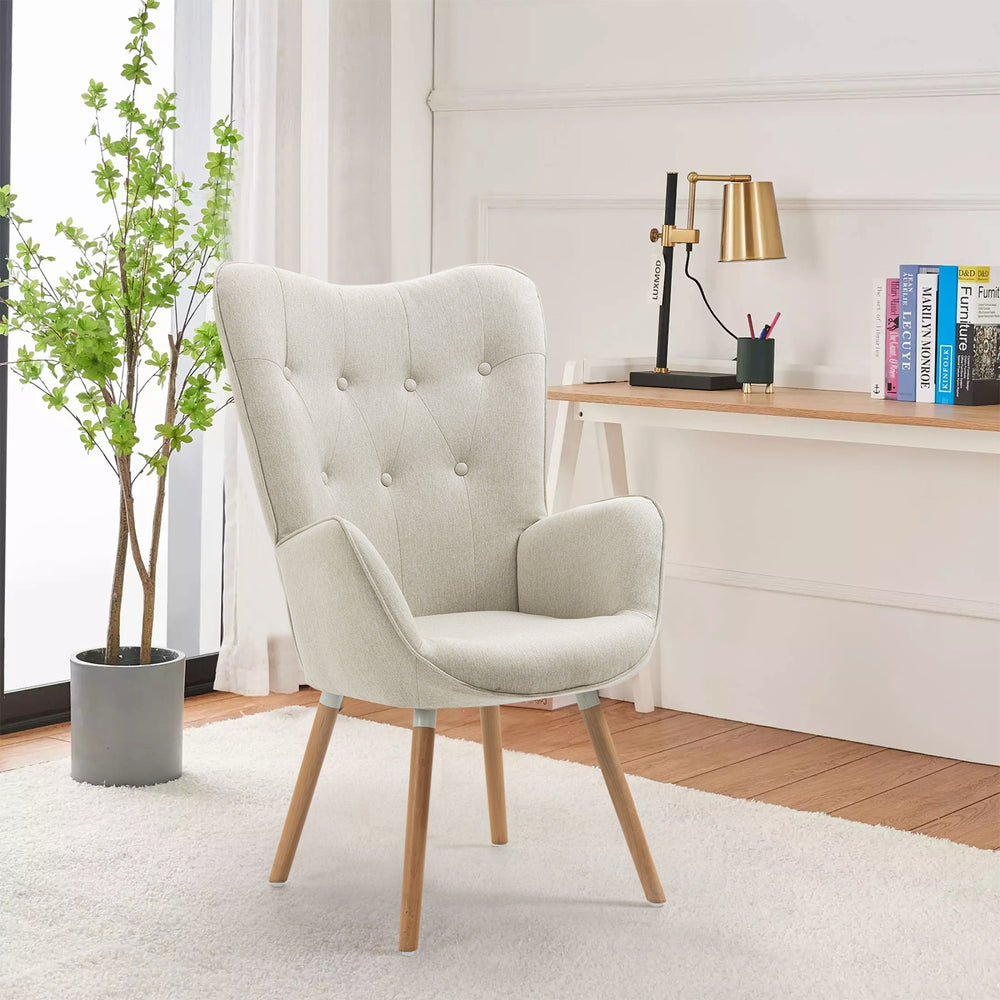 Fauteuil scandinave avec accoudoirs en tissu beige capitonné - KAS