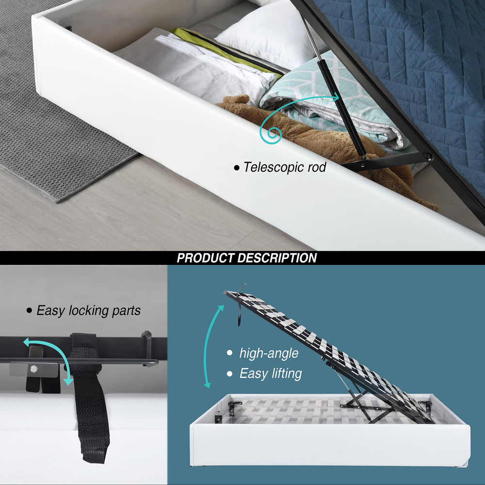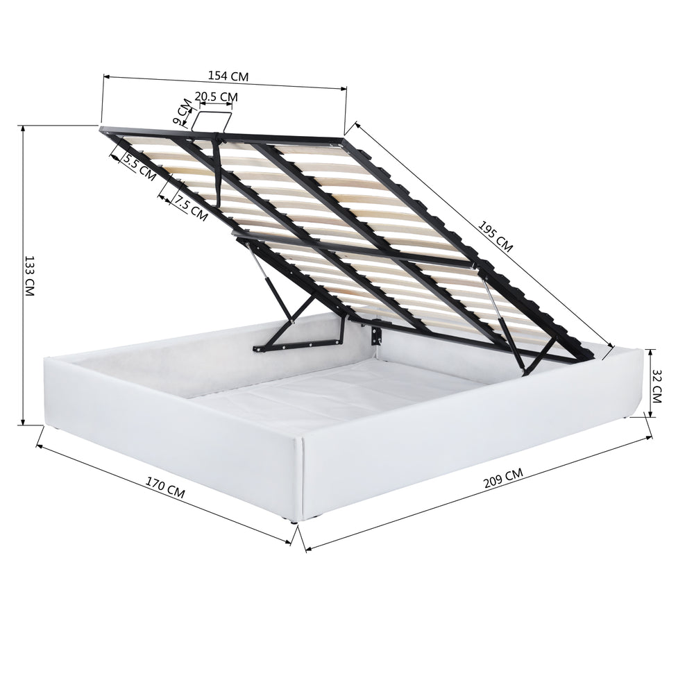 Lit coffre 2 places (160x200) avec sommier à lattes au style scandinave en similicuir blanc - MAJESTY