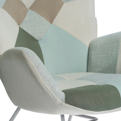 Fauteuil à bascule allaitement scandinave avec accoudoirs en tissu patchwork aqua capitonné - EPPING