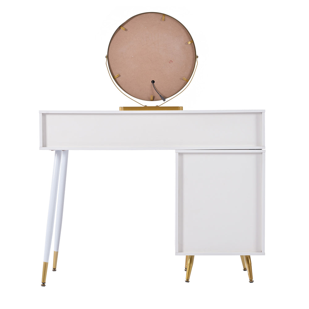 Cet élégant ensemble coiffeuse, à la fois fonctionnel et raffiné, est doté d'un miroir HD à éclairage LED et commandes tactiles intelligentes, ainsi que d'un meuble de rangement latéral ajustable et coulissant pour répondre à tous vos besoins en matière de maquillage et de produits de beauté. Son design intemporel et délicat apporte une touche de sophistication à tout espace, ce qui en fait un cadeau idéal pour une amie, une mère ou une sœur lors d'occasions spéciales. Fabriqué en bois haute densité de qualité E1, respectueux de l'environnement, et doté de pieds en métal robustes, il garantit stabilité et durabilité pour une utilisation à long terme.