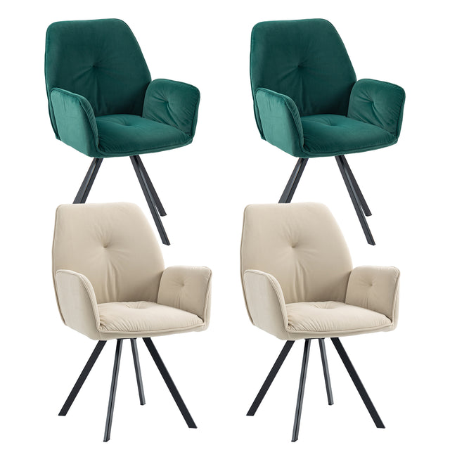 Confort Exceptionnel : Profitez d'un confort supérieur avec cet ensemble de 4 chaises de salle à manger en tissu, comprenant 2 chaises beiges et 2 chaises vertes. Les accoudoirs ajoutent une touche d'élégance et de commodité à votre expérience de repas.Design Élégant : Les chaises se distinguent par leur design moderne et épuré, parfait pour embellir votre salle à manger. Les pieds en métal noir offrent une stabilité exceptionnelle et une esthétique contemporaine.