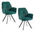 Lot de 2 chaises de salle à manger confortables en tissu vert avec accoudoirs - CALF GREEN