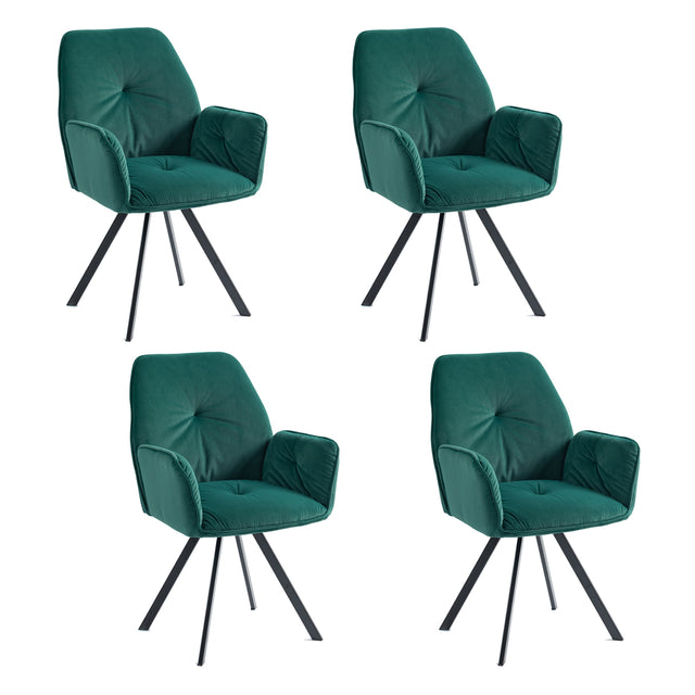 Lot de 4 chaises de salle à manger confortables en tissu vert avec accoudoirs - CALF GREEN 4PCS