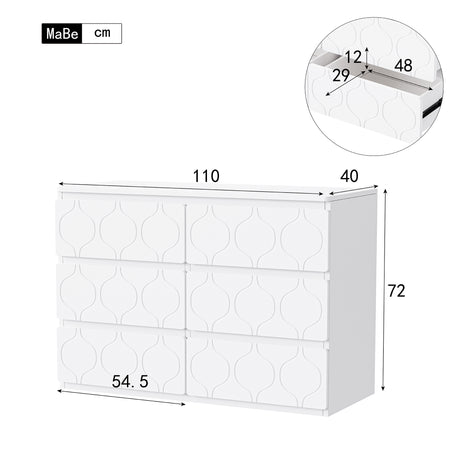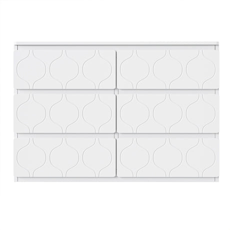 Commode blanche avec 6 tiroirs au design ondulé, finition laquée élégante et coins renforcés