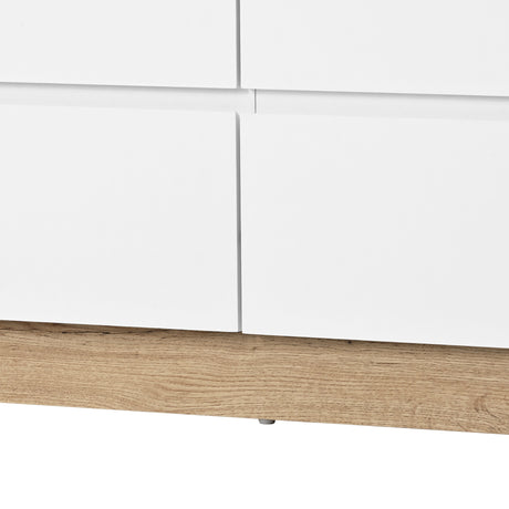 Commode blanche et chêne en panneau de particules E1 avec 6 tiroirs spacieux
