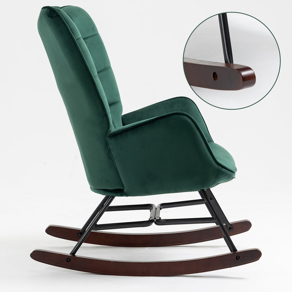 Fauteuil à bascule allaitement scandinave avec accoudoirs en velours vert foncé à surpiqûres - FUNKEL