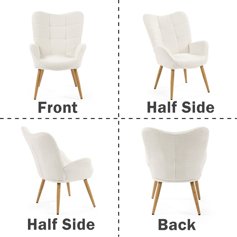 Fauteuil scandinave avec accoudoirs en tissu mouton bouclette beige à surpiqûres - KANAS