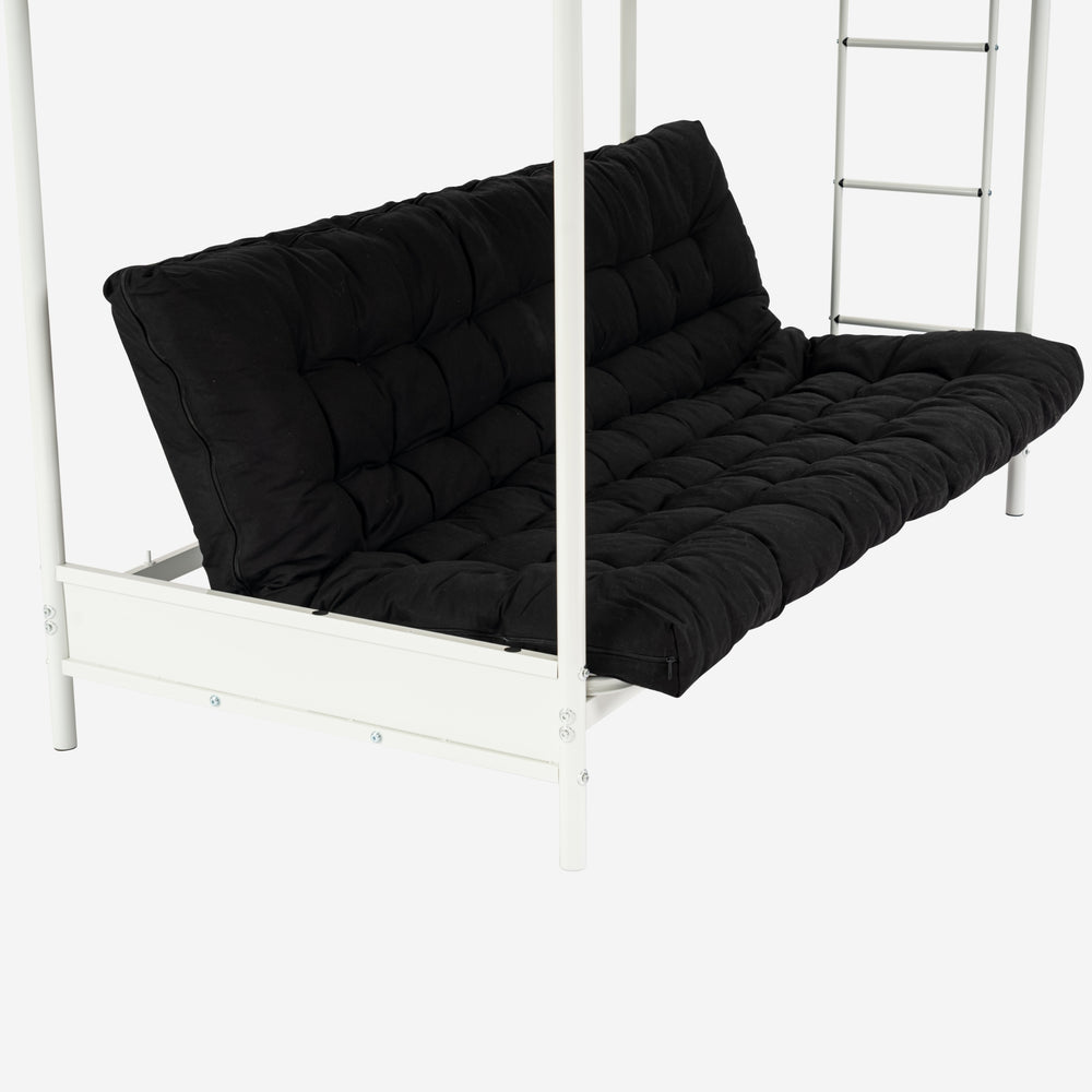 Ensemble lit superposé 90x190cm avec banquette convertible en métal blanc, et matelas futon pliable 2 places - LIBERTY N MICA