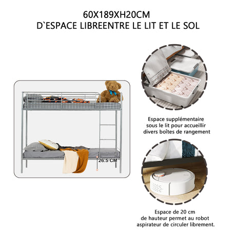 Lit double (140 x 190cm) avec tête de lit capitonnée en tissu gris (matelas non inclus) - LEON
