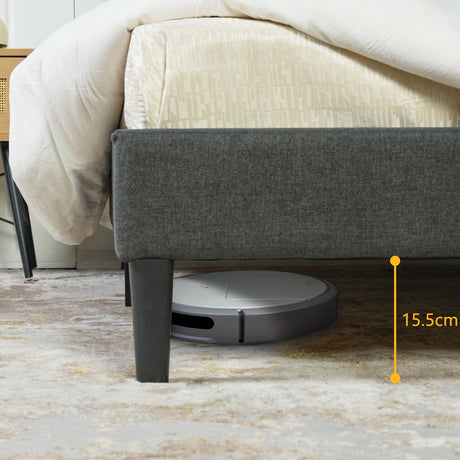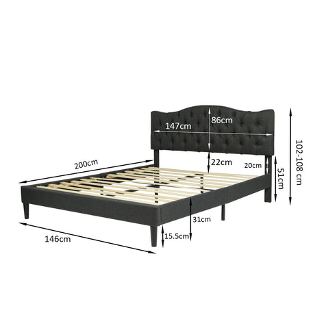 Lit double (160 x 200cm) avec tête de lit capitonnée en tissu gris (matelas non inclus) - LEON