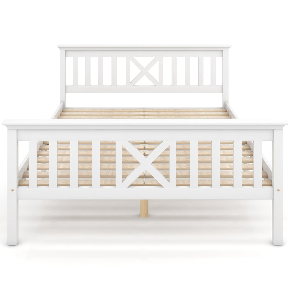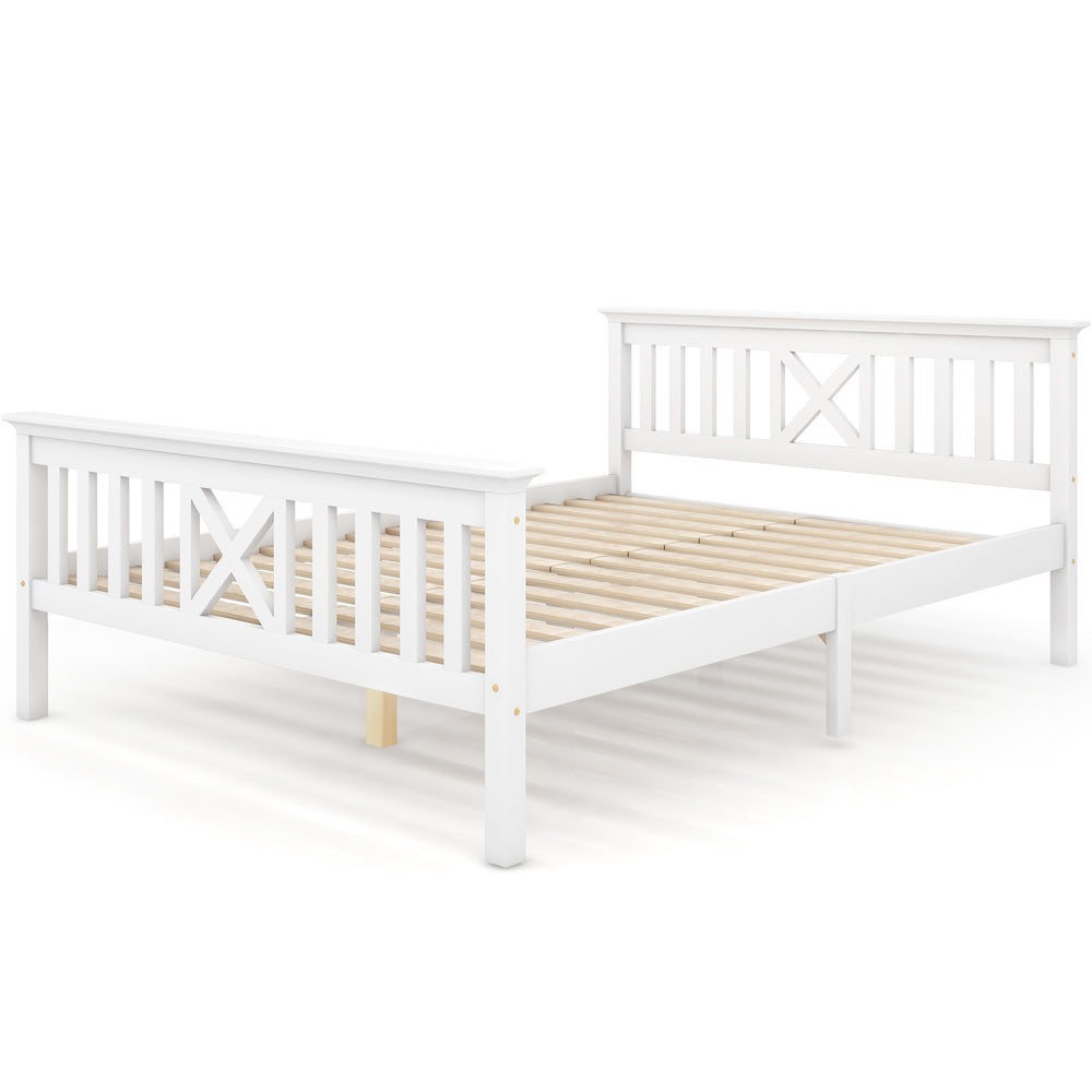 Lit double 140x200 cm blanc en bois massif de pin avec sommier à lattes et tête de lit (sans matelas)