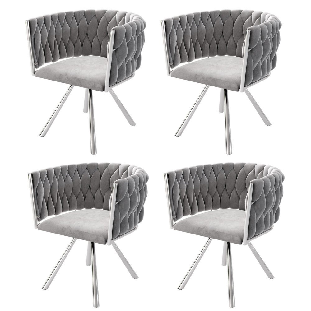Lot de 4 chaises de salle à manger pivotantes en velours gris avec pieds en métal argenté