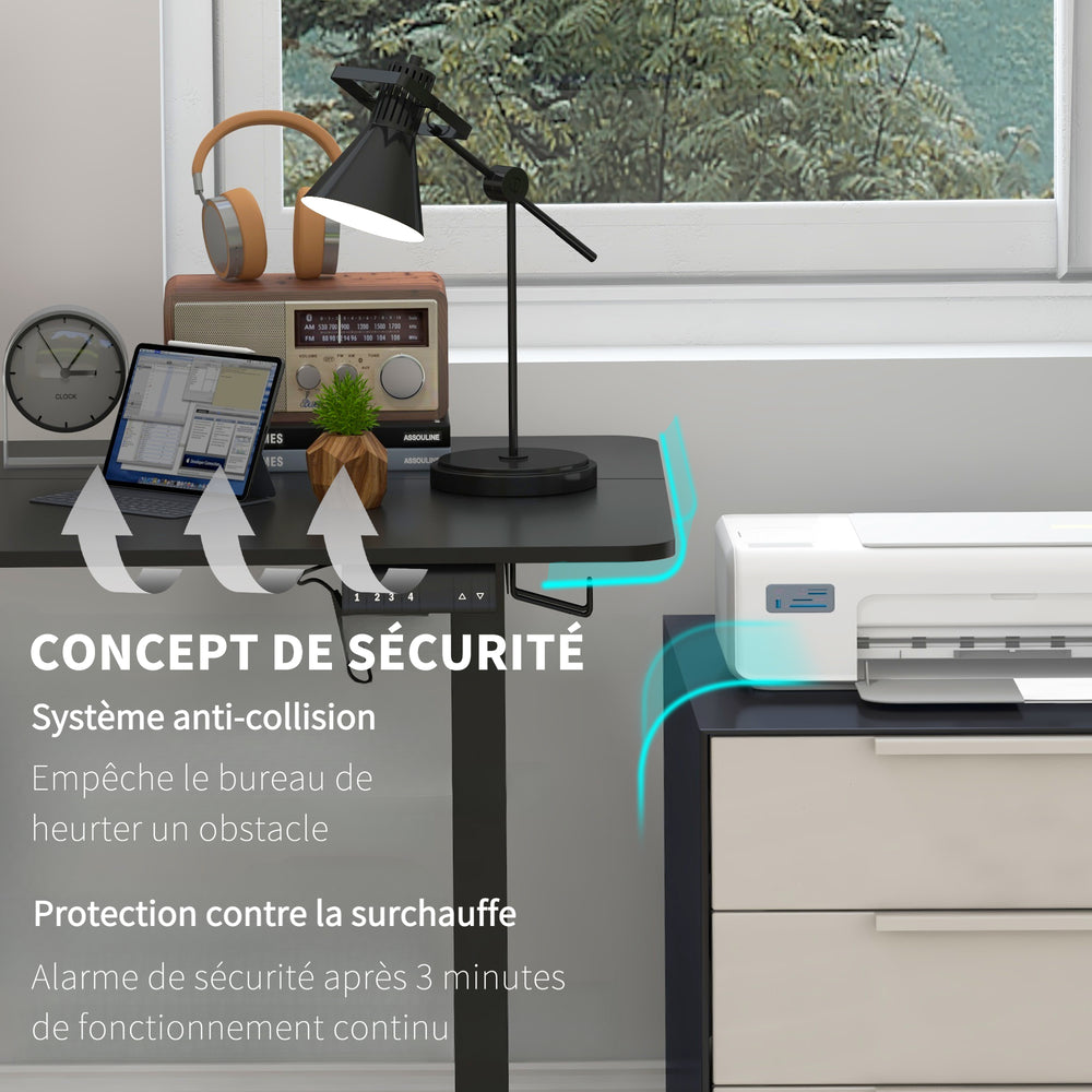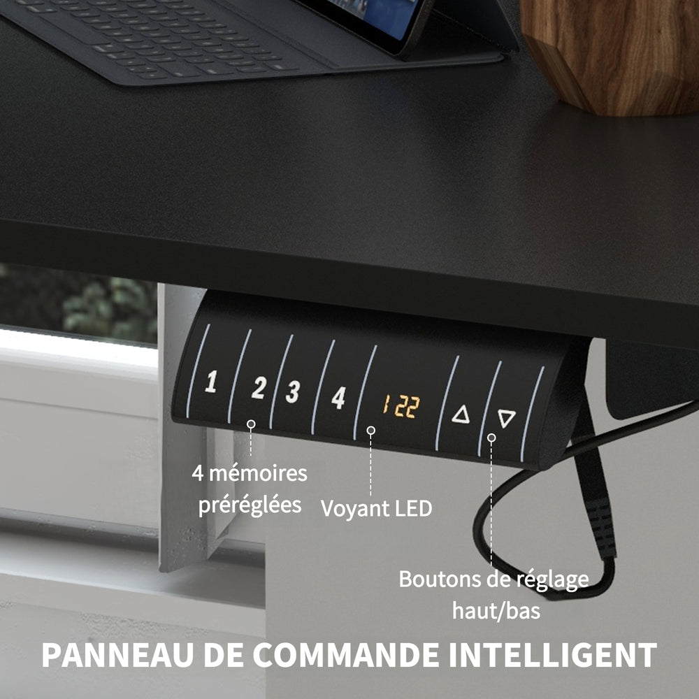 • Réglage électrique de hauteur : 4 options de stockage prédéfinies, plage de 72 cm à 116 cm pour confort assis ou debout