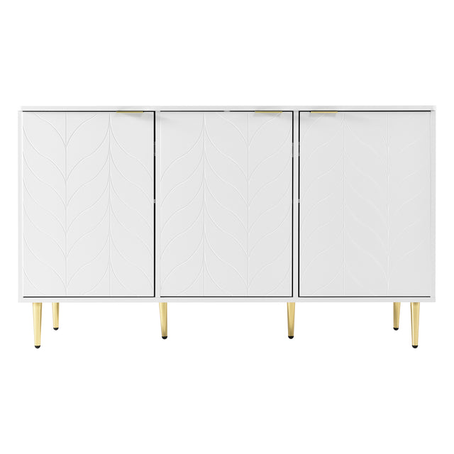 Sideboard moderne à motifs de fleurs 127×45×75cm Commode blanche avec pieds et poignées dorées 2 étagères 6 compartiments pour salon chambre à coucher et salle de bains