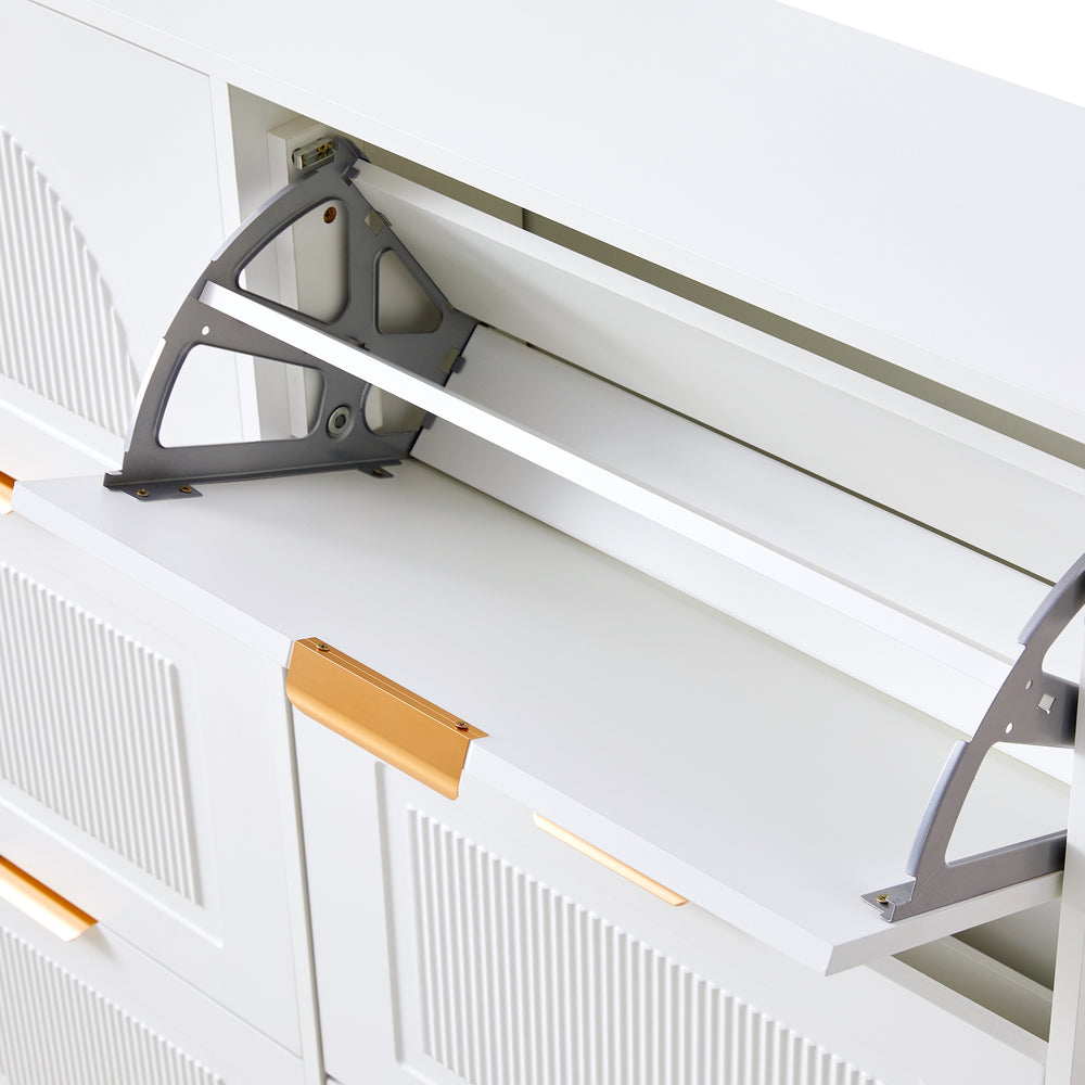 Meuble à chaussures moderne avec 6 abattants et étagères ouvertes, blanc â€?L118 x H115 x P25 cm