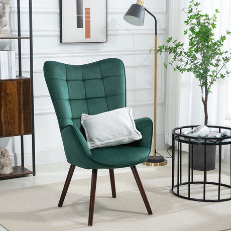 Fauteuil scandinave avec accoudoirs en velours vert à surpiqûres - FUNKEL