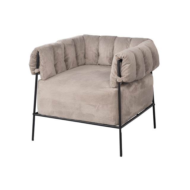 Ce fauteuil lounge au design confortable et épuré apportera une touche de sophistication à votre intérieur. Son revêtement en velours côtelé taupe clair et sa structure en métal noir offrent un mélange harmonieux de style industriel et moderne.