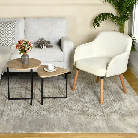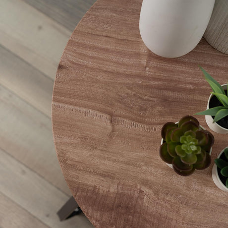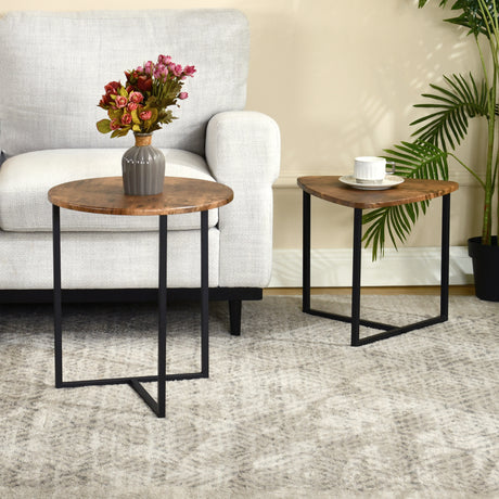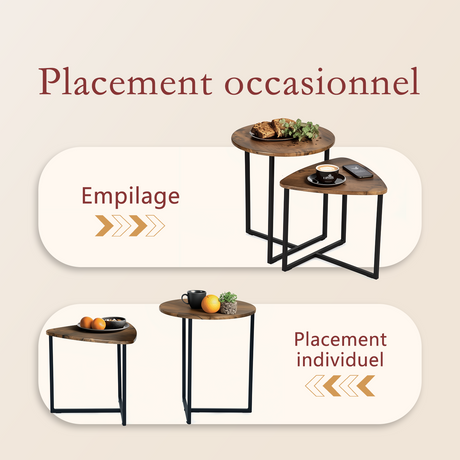 Lot de 2 tables basses rondes empilables avec plateau effet bois et structure en métal noir