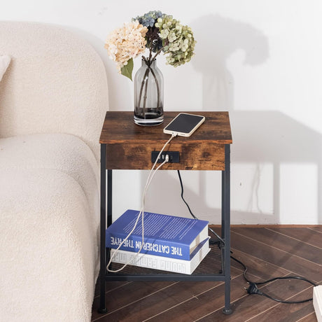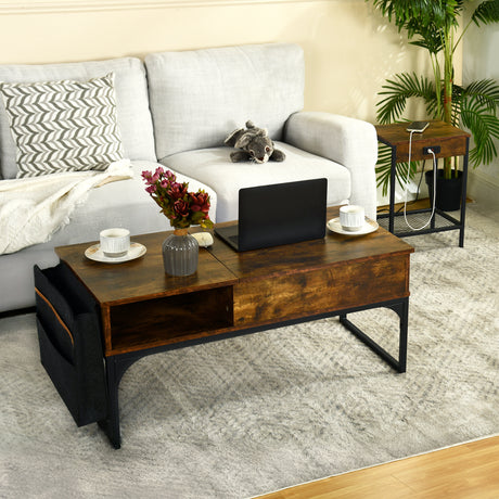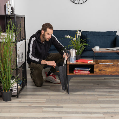 Lot de 2 tables basses gigognes style industriel en métal noir et bois imitation chêne ââ‚?LAYA