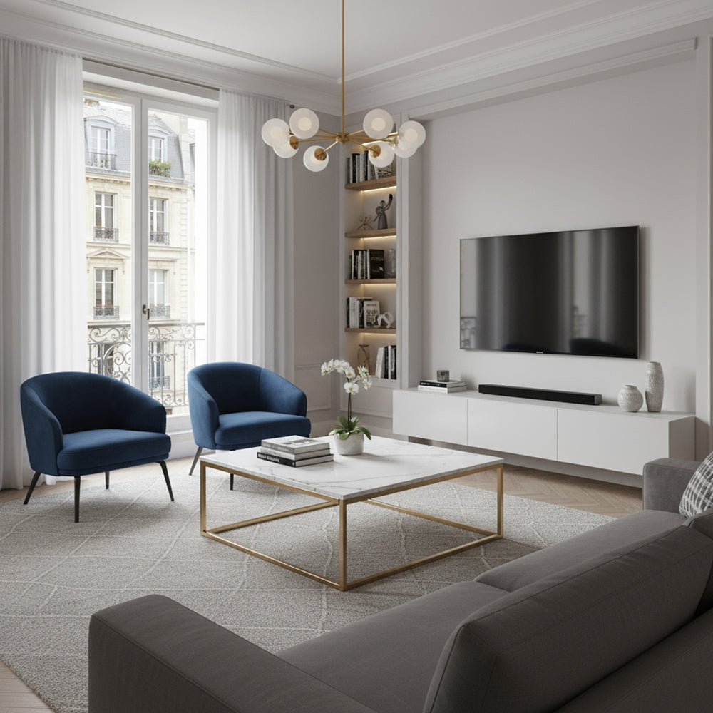 Ajoutez une touche de modernité à votre intérieur avec la table basse FACTO. Son design contemporain, associant un plateau effet marbre et une structure en métal doré, en fait un véritable atout déco pour votre salon.