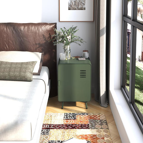 Table de chevet en métal vert style industriel avec rangement et étagère - WALNUT