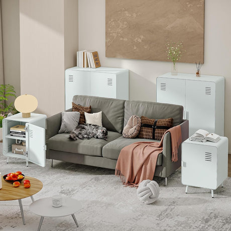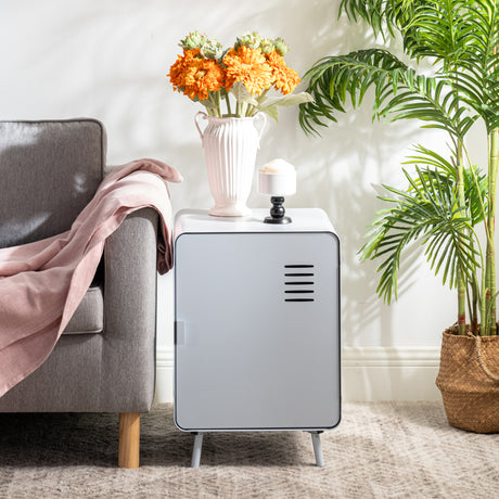 Table de chevet en métal blanc style industriel avec rangement et étagère - WALNUT