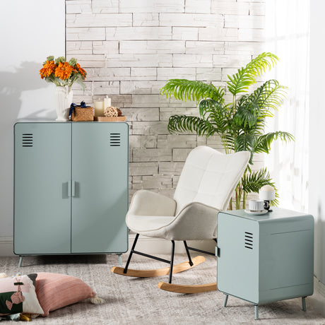 Table de chevet en métal vert clair style industriel avec rangement et étagère - WALNUT