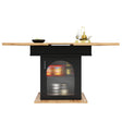Table à manger télescopique extensible 140×80cm 3 niveaux de rangement bois naturel + noir pour cuisine et salon