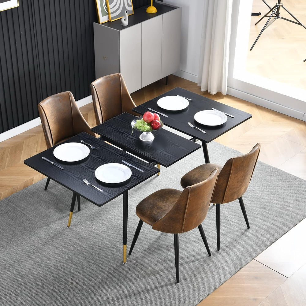 Cette table de salle à manger extensible en bois MDF noir apporte une touche élégante et fonctionnelle à votre espace. Idéale pour 4 à 6 personnes, elle est parfaite pour les repas en famille ou entre amis.