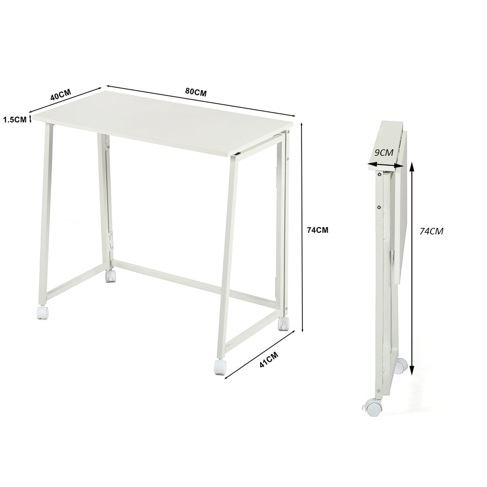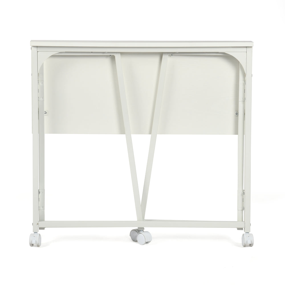Bureau/table d'ordinateur pliant scandinave avec 4 roulettes en bois blanc et en métal blanc - ASCOLI