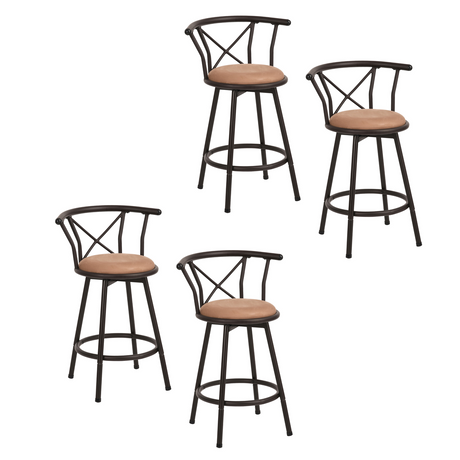 Lot de 4 tabourets de bar industriels pivotants avec dossier en tissu marron - HAILEY 24
