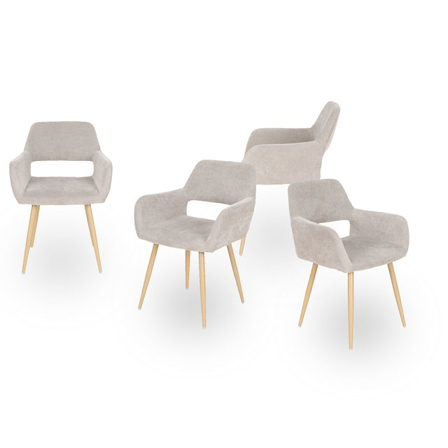 Set von 4 skandinavischen Esszimmer Sesseln mit Beige Stoff Armlehnen - Cromwell