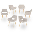 Set von 6 skandinavischen Esszimmer Sesseln mit Beige Stoff Armlehnen - Cromwell