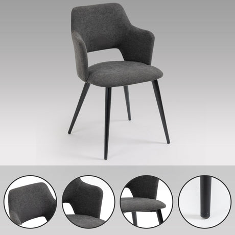 2 skandinavische Speisesäle mit Armlehnen in grauem Stoff - Akanji