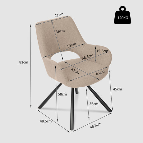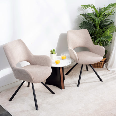 2 moderne Esstühle drehen in beige Stoff mit Armlehnen - Kalb