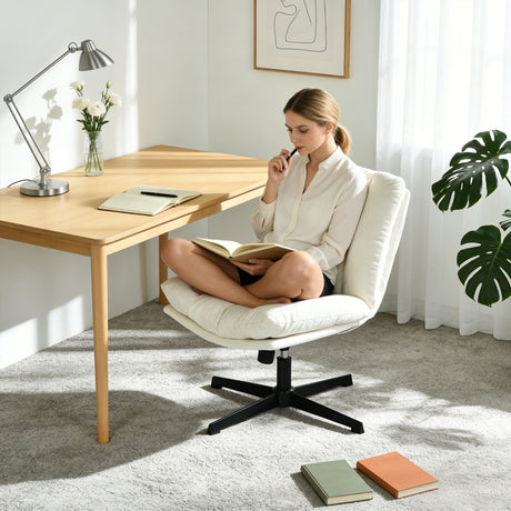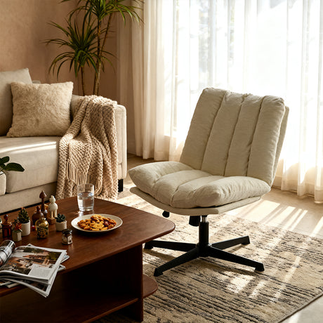 Klappbarer Freizeitsessel ohne Armlehnen aus weißem Stoff, 360° drehbar - AESTON
