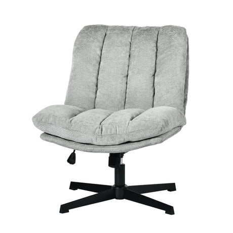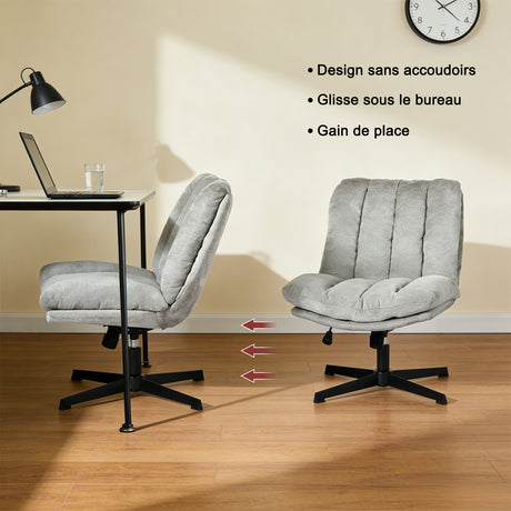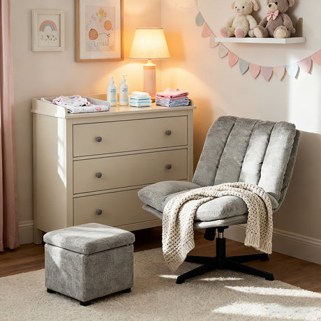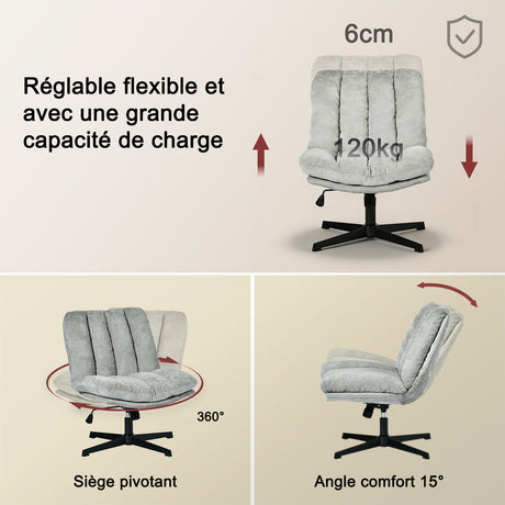 Verstellbarer Freizeitsessel aus grauem Chenille-Stoff, um 360° drehbar – LAMBERY