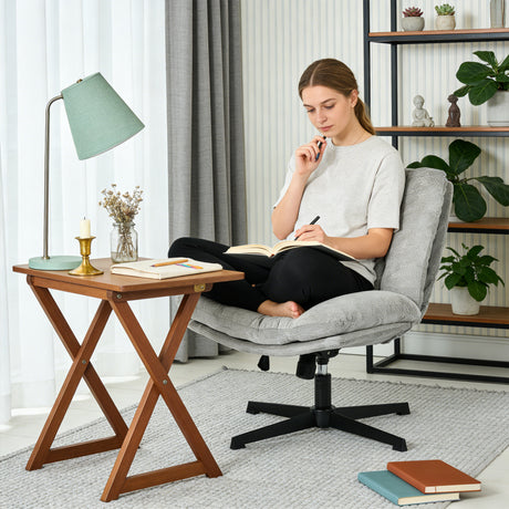 Klappbarer Freizeitsessel ohne Armlehnen aus grauem Stoff, um 360° drehbar - AESTON