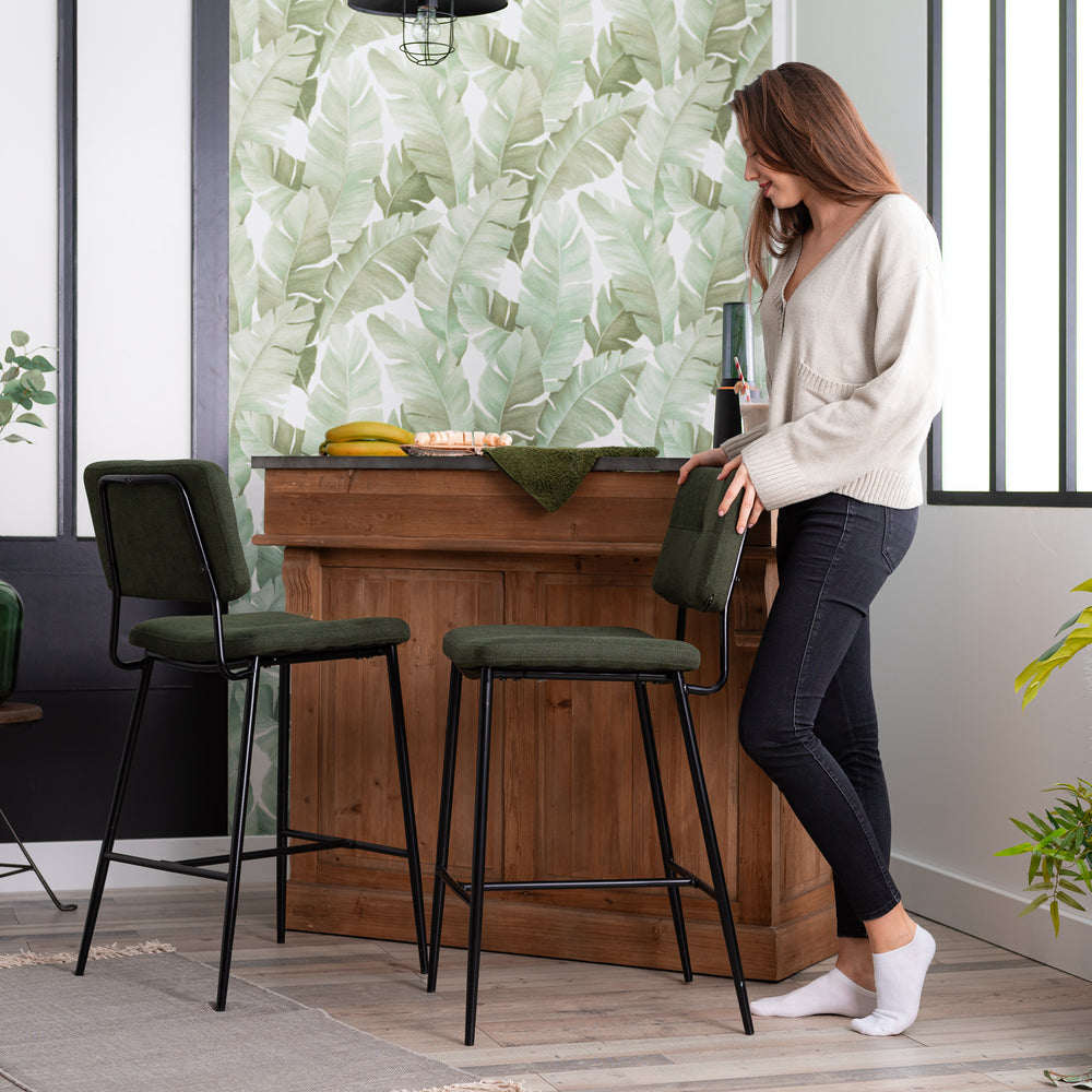 Set aus 2 industriellen Barhockern mit grüner Stoffrückseite – INDEPENDENCE BAR