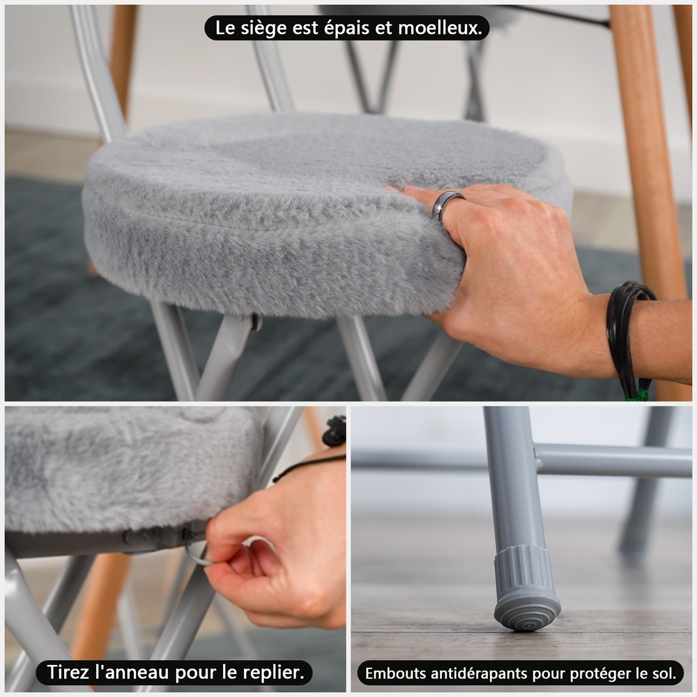 Set von 4 Klappstühlen/Stühlen, runder Sitz im Stoff Fellfell Grau - Ernst