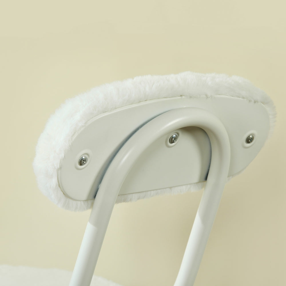 Klappstuhl mit rundem Kissen aus weißem Stoff in Felloptik